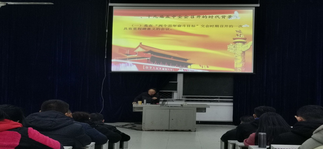 何忠国同志首先就第十九届五中全会的主要内容进行了解读。党的十九届五中全会描绘了我国未来发展的宏伟蓝图,作出了应对变局、开辟新局的顶层设计,在党和国家发展进程中具有全局性、历史性意义。讲解了要决胜全面建设小康社会、面对机遇把握机会迎接挑战、把人民身体健康放在第一位,制定国民经济和社会发展145规划,特别是2035年的远景目标等。重要指出党的十九届五中全会的重大意义,是准确领会全会精神的逻辑起点和思想基础。同时何忠国同志由党的第十九届五中全会精神向全体教师指出了几点关于学校的问题:1、 全面加强学校安全管理,保持和谐稳定,争做和平校园。2、各位教师应积极培养人才,利于国家的人才培养,严格要求各位学生。3、提升学生的国民素质和社会文化水平。4、加强我校对创新创业人员的培养。5、坚持创新是我国现代化建设全局中的核心地位等。