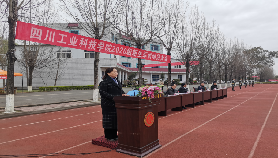 阳春三月,天高云淡,凉风习习,3月1日上午8点30分,四川工业科技学院(绵竹校区)2020级新生军训动员大会在学院田径场隆重举行。四川工业科技学院副校长何义兴,校党委副书记倪霞,体育学院执行院长雷耀方,体育学院党总支副书记魏天强,党政办副主任王昌林、安全保卫处副处长雷全祖、后勤处副处长李秀斌参加了此次动员大会,动员大会由绵竹校区管委会常务副主任、体育学院党总支书记何忠国主持。