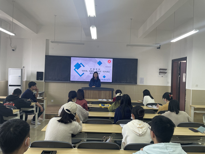 为进一步推动学院“转作风、优教风、强学风”校风建设,2022年3月11日中午,护理学院在10-511教室召开了“转作风、优教风、强学风”校风建设教职工研讨会。会议由党总支副书记李双晶主持,学院全体教职工30余人参加。