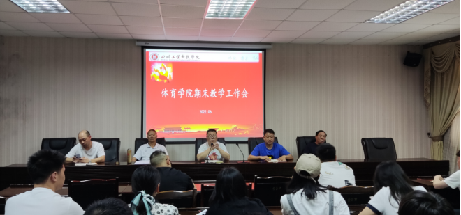 6月3日,体育学院召开期末教学工作会议,执行院长雷耀方、体育学院党总支副书记魏天强出席会议,会议由教学办主任李青主持,各系部负责人、教研室主任及全体教师参会。
