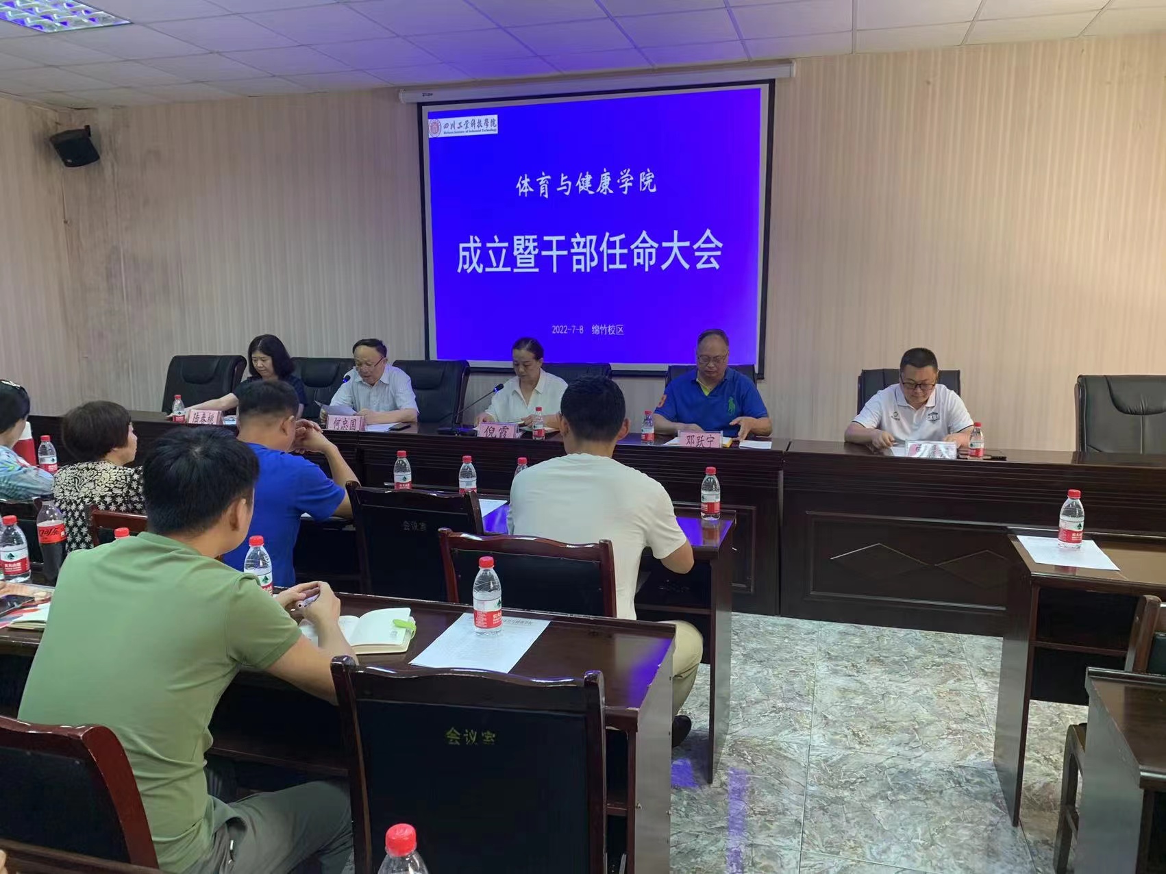 7月8日上午,四川工业科技学院绵竹校区在142会议室召开体育与健康学院成立暨干部任职大会。校党委副书记倪霞,体育学院院长邓跃宁等领导参加此次大会,会议由校党委学工部部长何忠国主持。