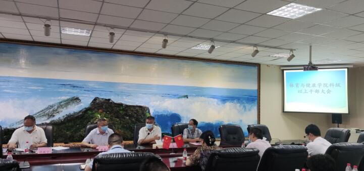8月10日体育与健康学院在罗江校区图书馆401会议室召开了科级以上干部大会,学校执行校长刘昌明、副校长黄斯欣、电子信息与计算机学院院长吴建乐、体育与健康学院院长邓跃宁及全体副科级以上干部参加了会议。