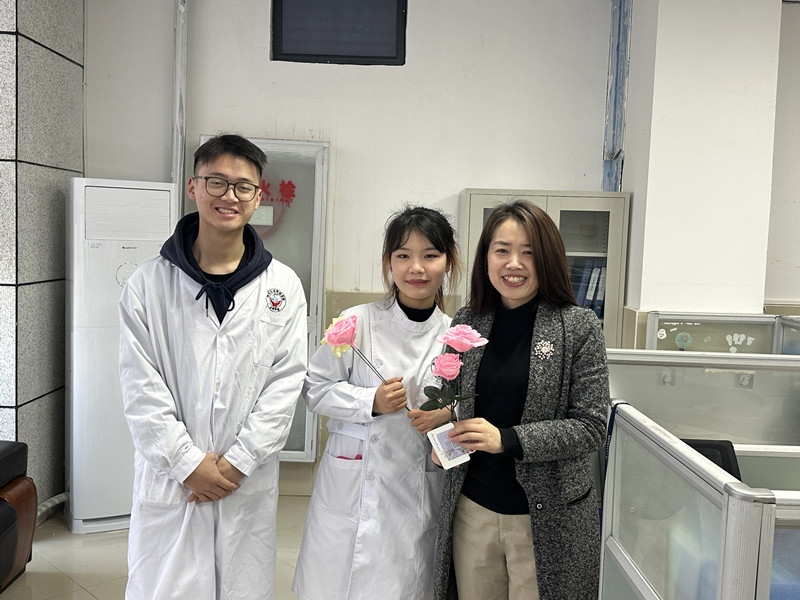 当天上午,学院学工办主任李丹、团总支书记潘城妹带领学院团学干部代表,向当天上午在岗的各职能部门女领导及学院有授课安排的女教师献上精美的祝福贺卡和手工玫瑰花。收到祝福的老师都表示十分惊喜与温暖,平日里辛苦的付出在那一刻化成了最简单又最真挚的快乐,做老师的幸福感油然而生。