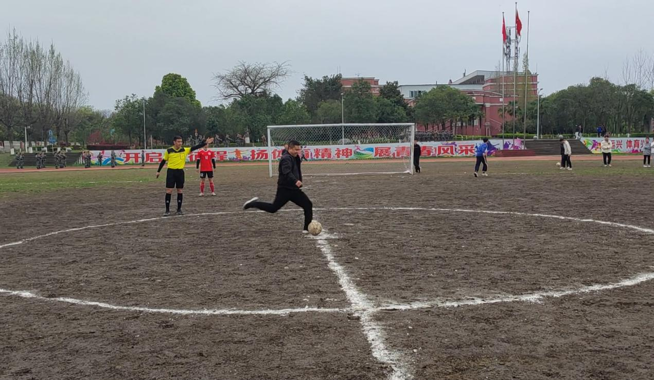 裁判代表宣誓完毕后,开场文艺部开场表演开始。曼妙的身姿舞动着青春的旋律,跳动音符绽放在初春的绿茵场上。随着李书记的一声令下,宣布本次“体健杯”足球赛正式开始!
