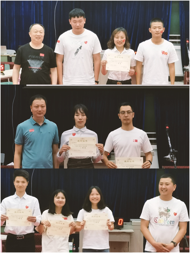 比赛结束后,彭冬梅老师代表队伍获得第一名,李超老师、陈心歌老师代表队伍获得第二名,周洪婷老师、刘正银老师、魏天强老师代表队伍获得第三名。学院领导为其颁奖并合影留念。
