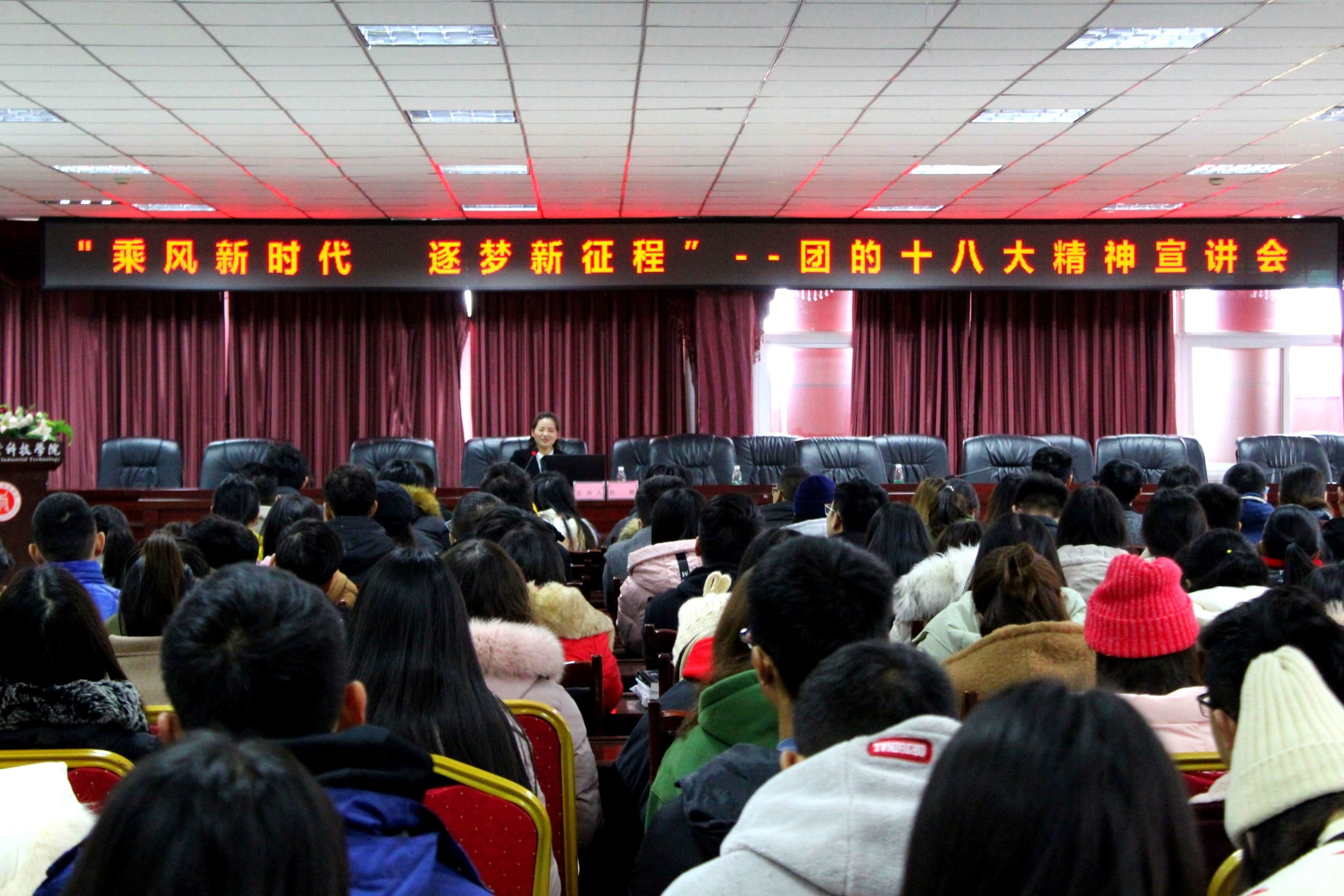 为深入学习贯彻习近平新时代中国特色社会主义思想和团的十八大精神,增强青年学生的政治意识,12月11日中午, “乘风新时代 逐梦新征程”团的十八大精神宣讲会在我校图书馆D-408举行。