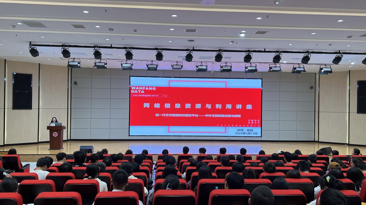 4月13日下午,图情与网络电教中心在龑江学术报告厅—科技厅开展了“网络信息资源与利用”讲座。特邀万方数据杨磊讲师担任主讲。此次讲座共有师生近300人参加。