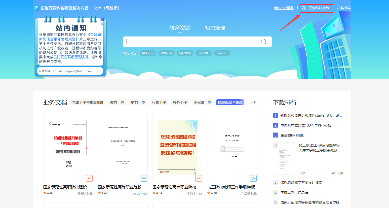 2.如在学校IP范围内会在右上角显示机构名称,如未显示机构名称则表示不是在校园IP范围内登录。