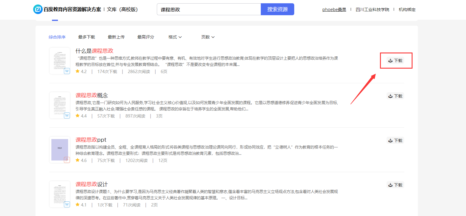 4.选择自己想要的文章进行下载,点右“下载”——选择文件保存路径——点击“下载”后完成下载,然后去到对应的文件夹找到自己下载的文件。