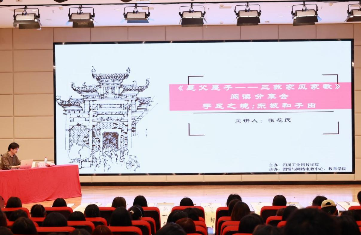 5月9日下午,学校在龑江C区报告厅开展了《是父是子—三苏家风家教》主题阅读分享会。作家、出版人,中国苏轼研究会理事,四川省作家协会会员张花氏在会上进行了阅读分享。