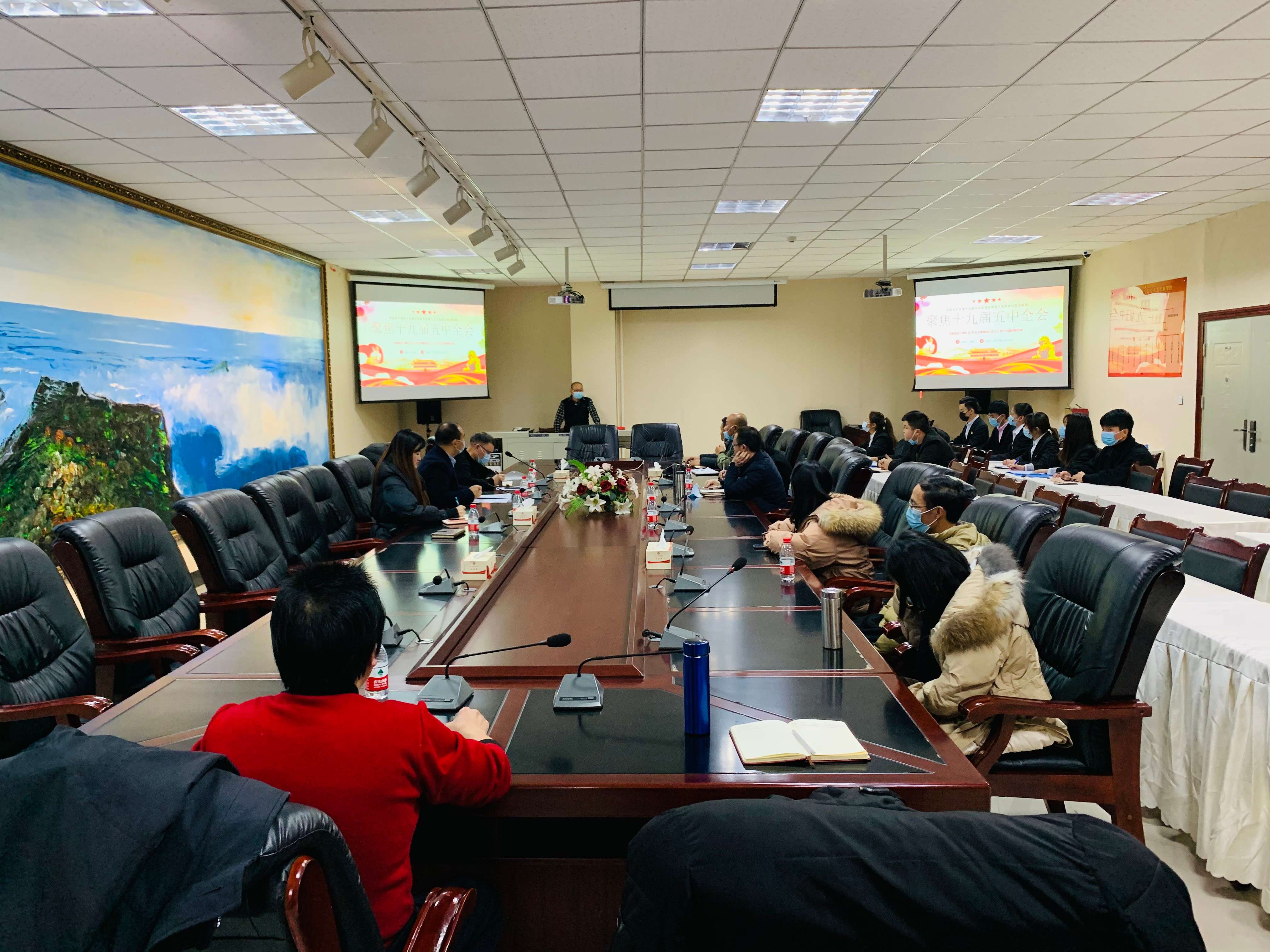 首先,蔡林同志带领与会同志深入学习了《中国共产党第十九届中央委员会第五次全体会议公报》全文。杨朋书记传达了校党委关于学习贯彻党的十九届五中全会精神的要求。