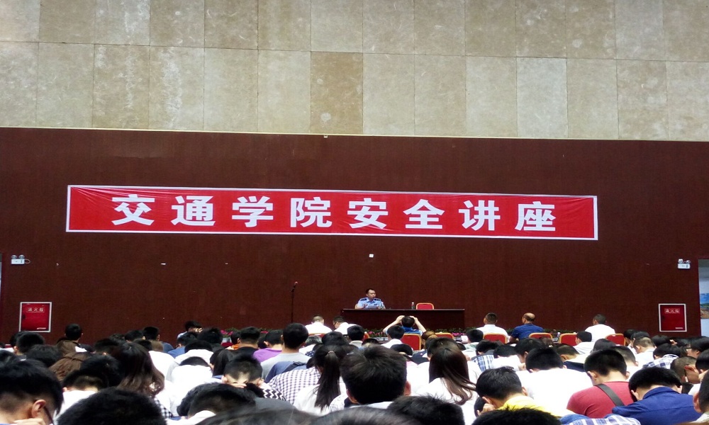 为大力宣传安全知识,增强我校大学生的安全防范意识,5月15日晚,我校交通学院特邀罗江县公安局万安镇万安派出所副所长周阳,学校保安处老师唐建伟在体育馆为本院学生开展了安全知识讲座。出席本次讲座的领导有交通学院院长何忠国、副院长徐纯厚。