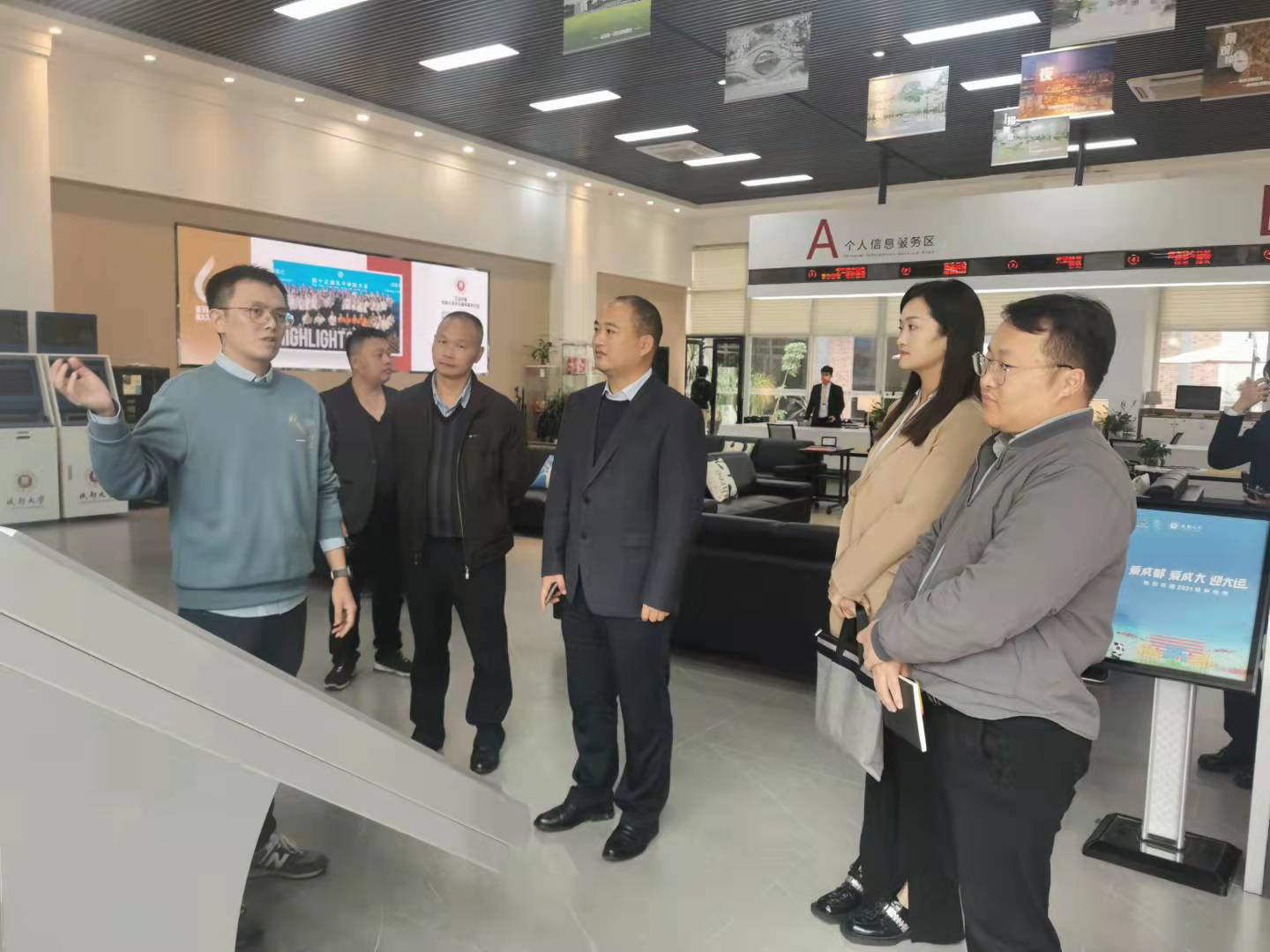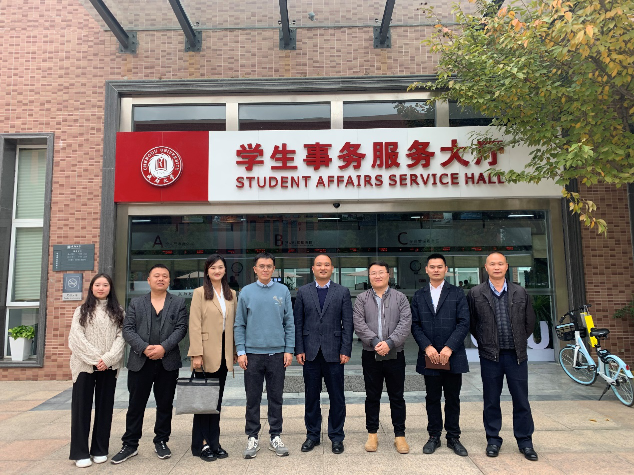 2021年10月27日下午3点,学校党委副书记杨朋一行到成都大学学生事务服务中心参观考察,团委书记曾晓莉、学生资助中心主任张旭彬、管理学院党总支副书记张东国一行共同参观学习。