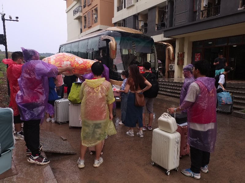 尽管细雨绵绵且转运至龑江公寓的新生数量很大,可是转运现场却秩序井然。学生处张耀峰老师凭借丰富的校内新生转运工作经验,有序指挥着学生志愿者先将需要转运至龑江公寓的新生带入候车区列队等待,且安排学生用小喇叭多次提示新生“到龑江公寓和骄子公寓乘坐的是不同的车辆,这边是到龑江公寓的,切勿坐错车辆。”等校内中转车辆开至指定位置后,再引导新生依次乘车和帮助新生装运行李,待车内满员且行李清点完整后便通知行车司机出发。