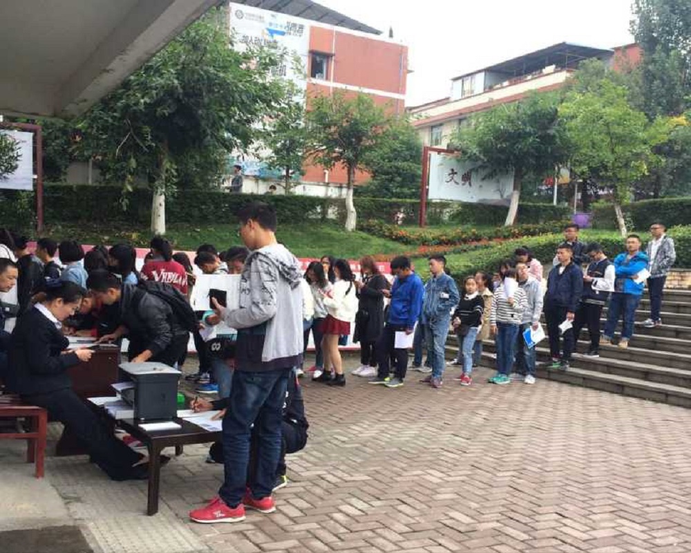 10月10—10月12日,连续三天,德阳农商银行在我校钟灵楼一楼资助中心前设立银行卡一对一办理点,为我校学生提供了一个便捷的平台。同学们利用课余时间,整齐有序的在办理点排队等候办理。现场办理业务的同学说:以前到县城办理银行卡少说来回至少需要半天时间,现在在学校只需几分钟就办理到银行卡了,真是省事省力,方便快捷。