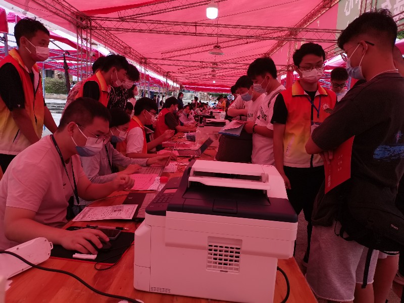 在迎新场地,线下报到工作也在如火如荼推进中,各二级学院负责新生报到的老师和学生志愿者,认真查看着前来报到学生的毕业证和身份证,核验完成后在“迎新系统”中输入学生的身份证号,在反复详查学生相关入学信息并确认无误后,再出具该新生的2022级新生报到流程单。学生拿到报到单后,可根据二级学院点位张贴的2022级新生缴费指南完成学费缴纳,再到收费处进行报到确认,也可以直接到收费处缴纳学费。