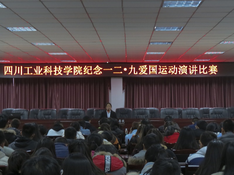 回眸历史一二九,今朝长跑爱国情。2016年12月8日,由共青团四川工业科技学院委员会主办的纪念“12·9”爱国运动演讲比赛在我校图书馆D–408顺利举行。此次比赛由团委张彬老师、财经学院刘琴老师、校学生会秘书长黎贤良、副主席李云、办公室部长汪新欣担任评委。