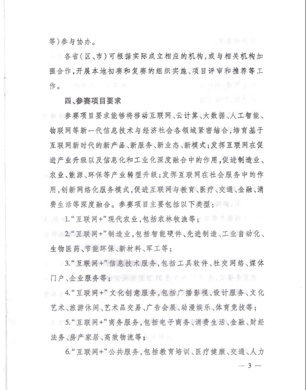 教育部关于举办第三届中国“互联网+”大学生创新创业大赛的通知