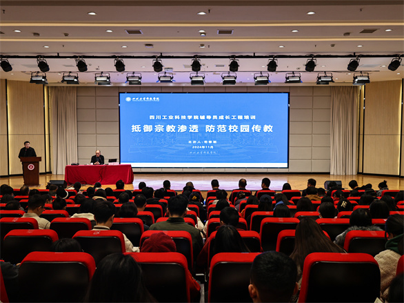 11月28日,学校在龑江C区学术报告厅组织开展了辅导员成长工程培训,特邀四川省公安厅政治安全保卫总队警官苟攀朝进行“抵御宗教渗透、防范校园传教”专题讲座。德阳市公安局政保支队副队长刘敏,罗江区公安分局政委罗南、政保大队长黄明铭,学校党委副书记杨朋出席讲座。学校组织部、宣传部、统战部、学工部、安保处、马克思主义学院相关工作人员及全体辅导员参加培训,德阳农业科技职业学院辅导员代表、西南财经大学天府学院辅导员代表参加培训。培训由学生处副处长蔡明主持。