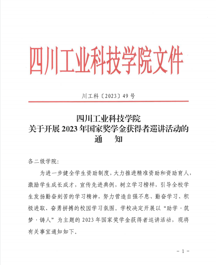 关于开展2023年国家奖学金获得者巡讲活动的通知
